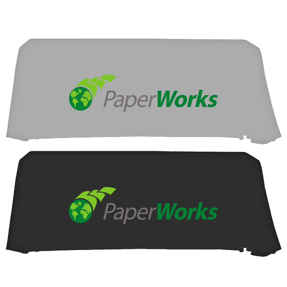 Our 4-sided non-fitted table cover with a full back is crafted from eco-friendly 6oz 300D polyester, featuring durable double-edge stitching. The white cloth is adorned with vibrant full-color digital printing, and it comes with a clear PVC carry bag for easy transport.